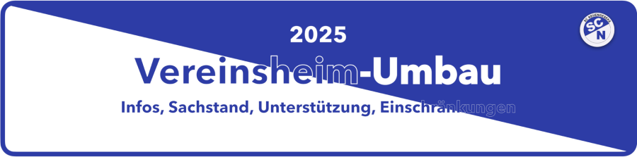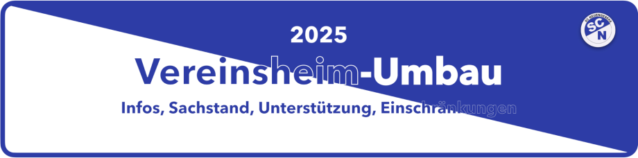 Für uns steht auch im Jahr 2025 wieder eine große Baumaßnahme an. Wir renovieren unser Vereinsheim. Und wenn der SCN baut, dann bleibt bekanntermaßen kein Stein auf dem anderen. Na gut, so schlimm wird es nicht werden... aber wir haben einiges vor.