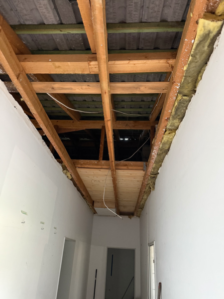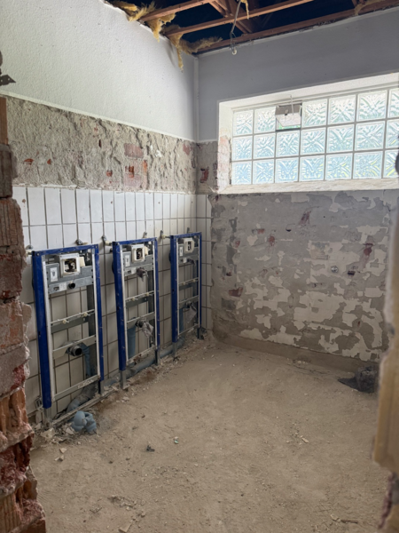 Bei den Abbrucharbeiten in den Duschen sind wir auf einen größeren Wasserschaden gestoßen. Wir mussten das Wasser abdrehen, um ein weiteres